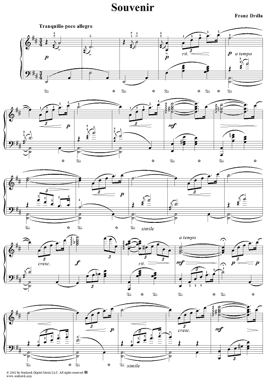Digital Sheet Music for Souvenir by Franz Drdla scored for Piano Solo; id:263105