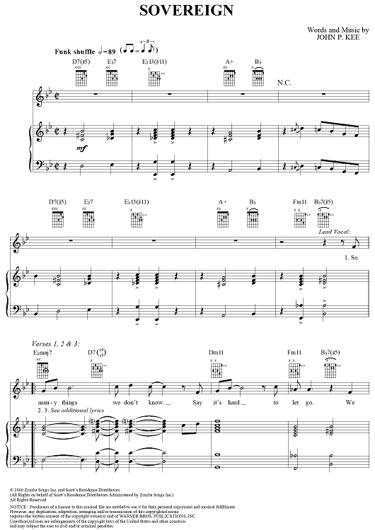 Digital Sheet Music for Sovereign by John P. Kee and The New Life Community Choir, John P. Kee scored for Piano/Vocal/Chords; id:285414