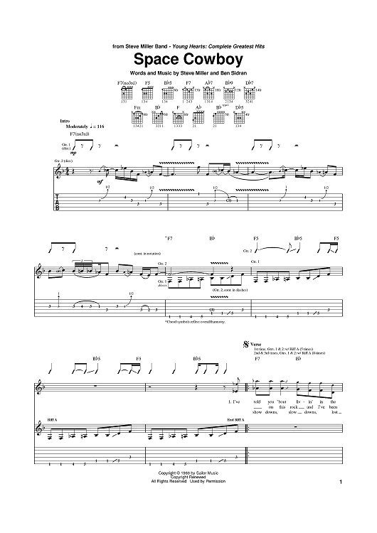 Digital Sheet Music for Space Cowboy by Steve Miller, Steve Miller Band, Ben Sidran scored for Guitar Tab; id:386231