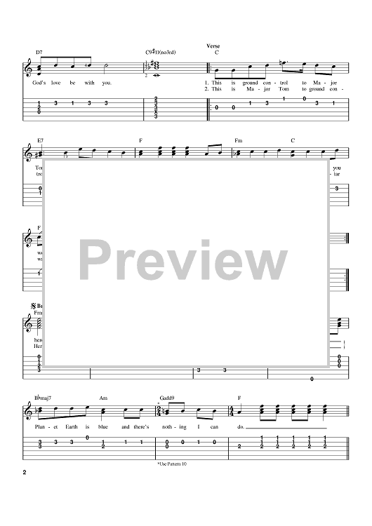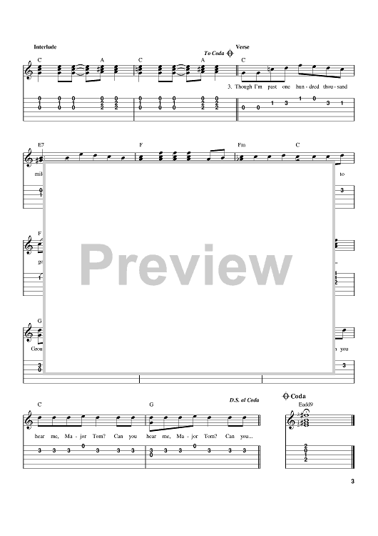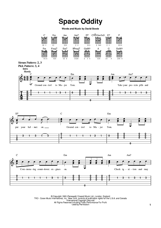 Digital Sheet Music for Space Oddity by David Bowie scored for Easy Guitar; id:370216