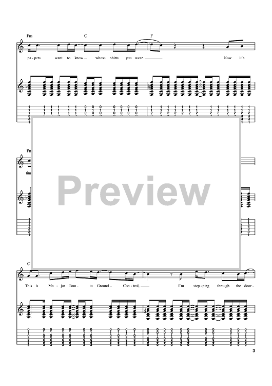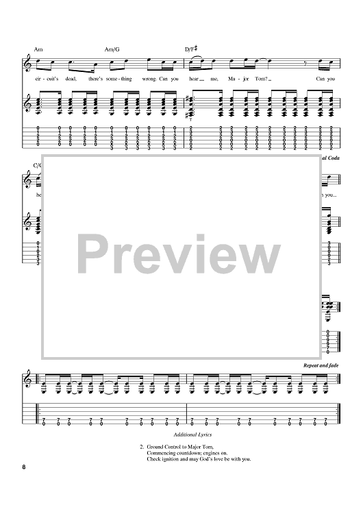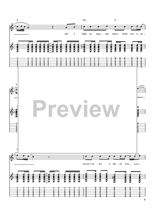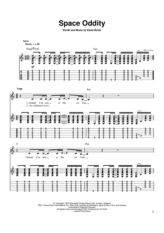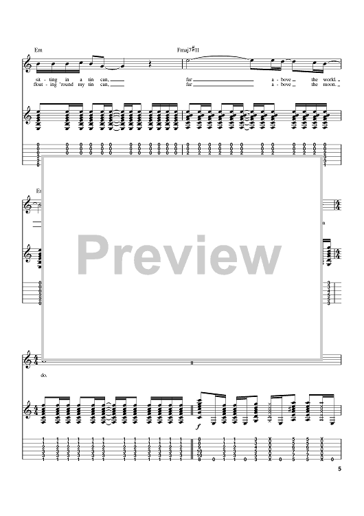 Digital Sheet Music for Space Oddity by David Bowie scored for Guitar Tab; id:374210