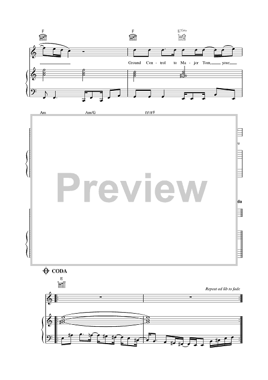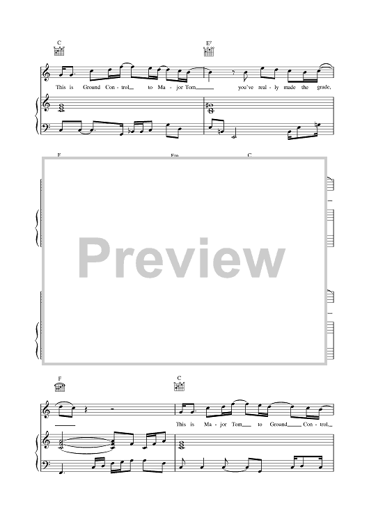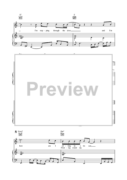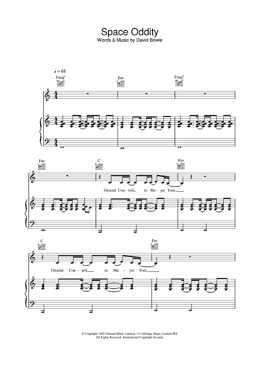 Digital Sheet Music for Space Oddity by David Bowie scored for Piano/Vocal/Chords; id:379081
