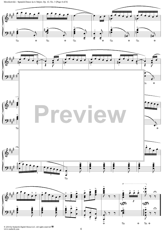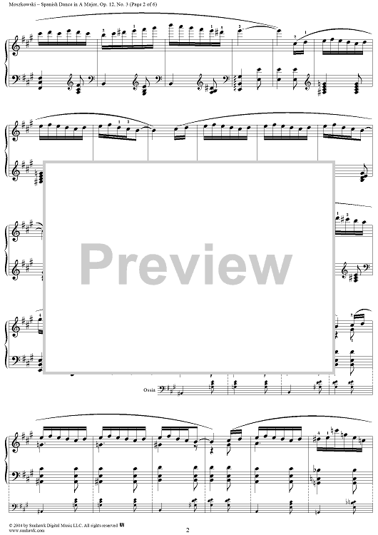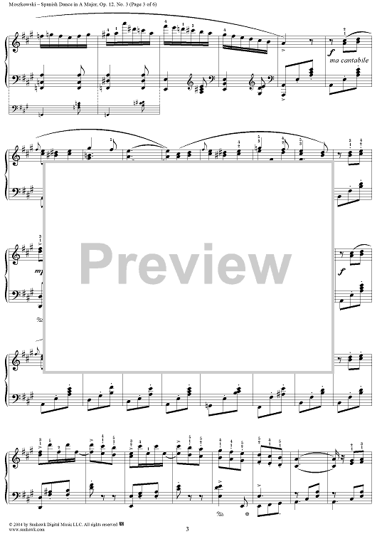 Digital Sheet Music for Spanish Dance in A Major, Op. 12, No. 3 by , Moritz Moszkowski scored for Piano Solo; id:296748