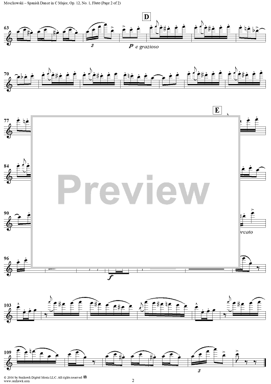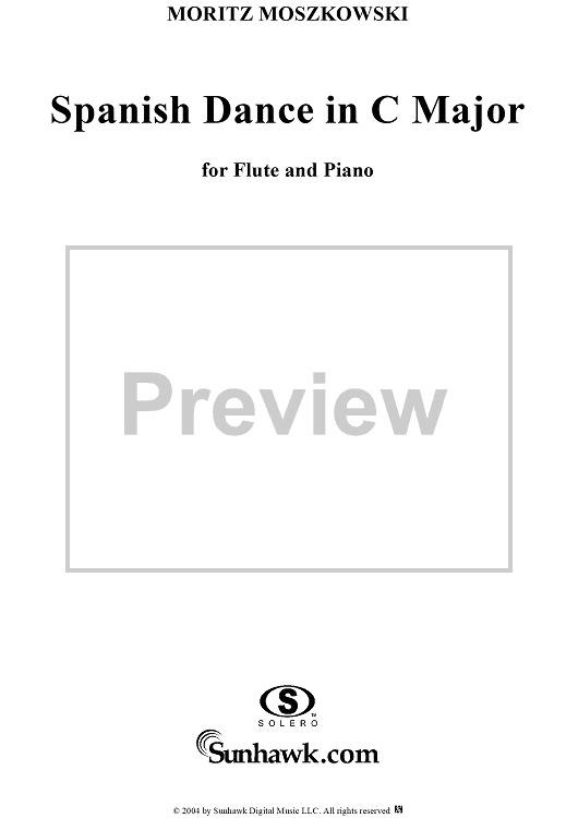 Digital Sheet Music for Spanish Dance in C Major, Op. 12, No. 1 - Flute by Moritz Moszkowski scored for Flute/Piano; id:296762