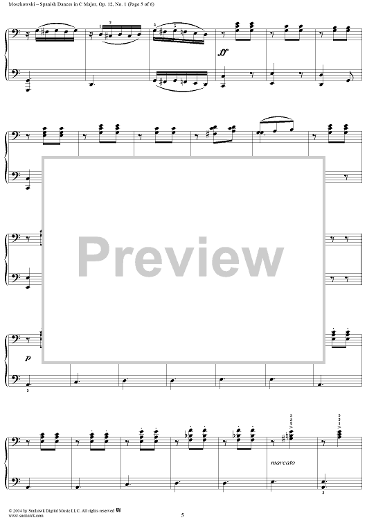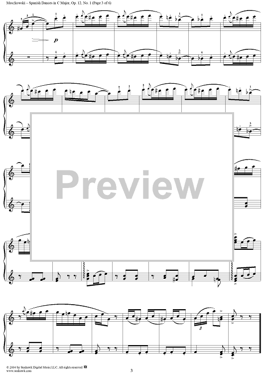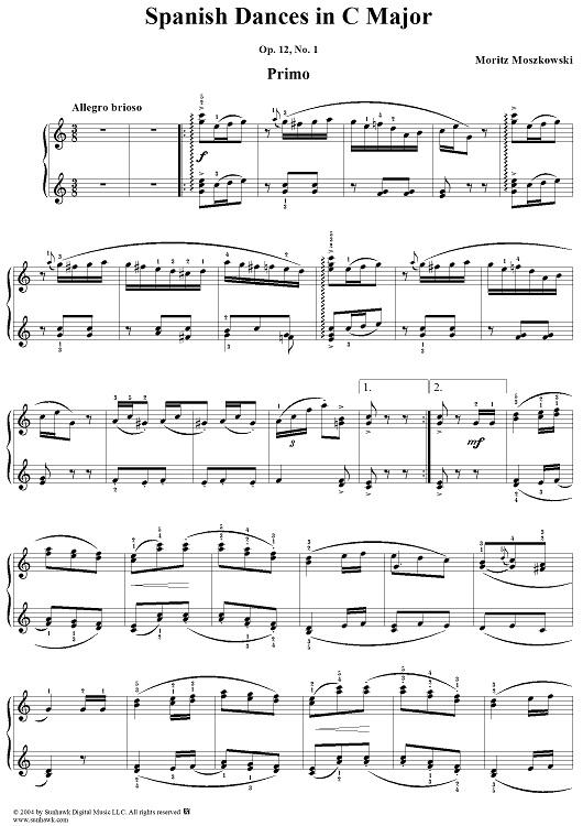 Digital Sheet Music for Spanish Dance in C Major, Op. 12, No. 1 by Moritz Moszkowski scored for 1 Piano, 4 Hands; id:296757