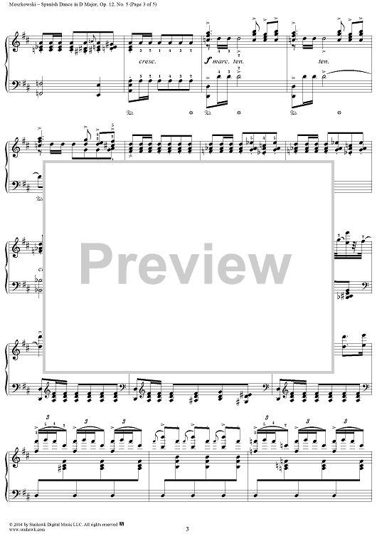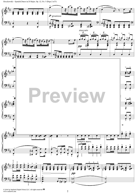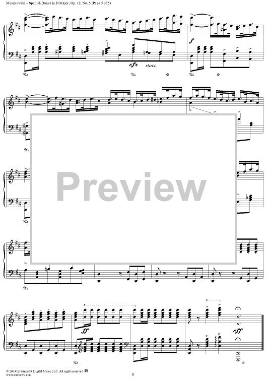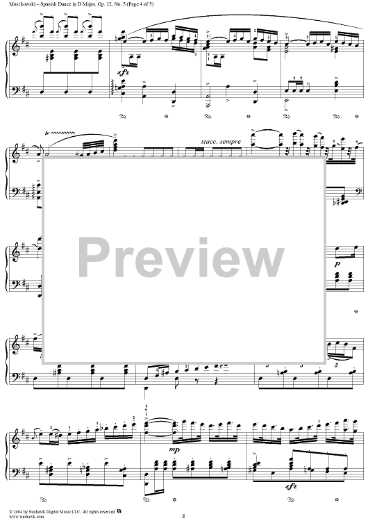 Digital Sheet Music for Spanish Dance in D Major, Op. 12, No. 5 by , Moritz Moszkowski scored for Piano Solo; id:296750