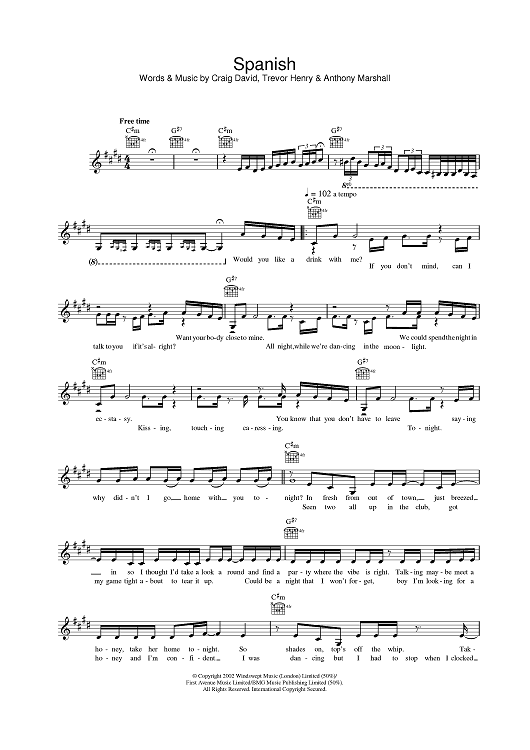 Digital Sheet Music for Spanish by Craig David, Trevor Henry, Anthony Marshall scored for Lead Sheet; id:377901