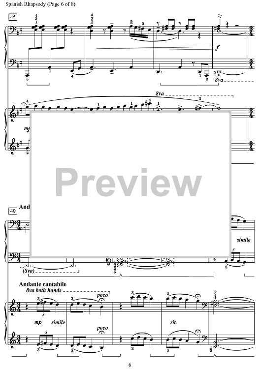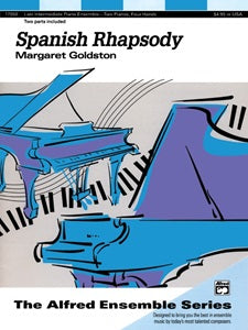 This popular late intermediate ensemble piece by Margaret Goldston is written for two pianos, four hands. Changes in dynamics, unusual meters, and key modulations are featured in a challenging Spanish-style duet. Contrasting sections are marked cantabile espressivo and agitato con fuoco, leading to dramatic glissandi in both parts at the ending