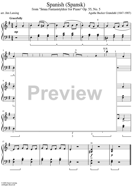 "Spanish (Spansk)" Sheet Music by Agathe Backer Grøndahl