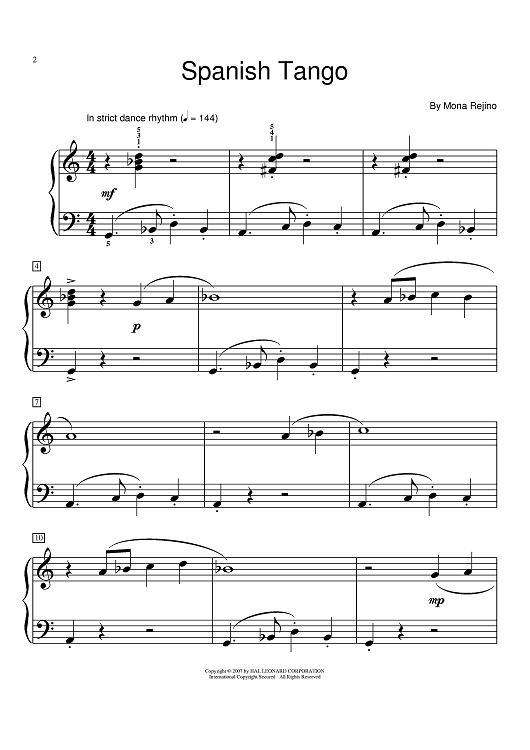 Digital Sheet Music for Spanish Tango by Mona Rejino scored for Piano; id:401788