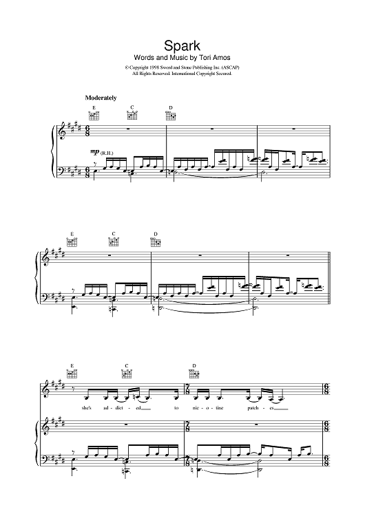 Digital Sheet Music for Spark by Tori Amos scored for Piano/Vocal/Chords; id:376709