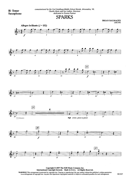 Digital Sheet Music for Sparks - Bb Tenor Sax by Brian Balmages scored for Concert Band; id:442788