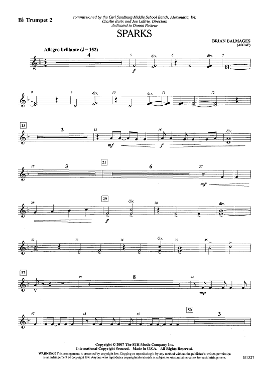 Digital Sheet Music for Sparks - Bb Trumpet 2 by Brian Balmages scored for Concert Band; id:442791