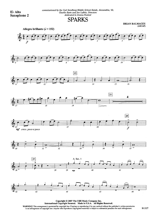 "Sparks - Eb Alto Sax 2" Sheet Music by Brian Balmages