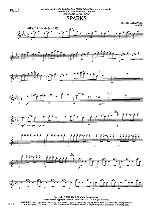 Digital Sheet Music for Sparks - Flute 1 by Brian Balmages scored for Concert Band; id:442779