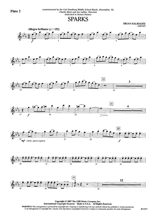 Digital Sheet Music for Sparks - Flute 2 by Brian Balmages scored for Concert Band; id:442780