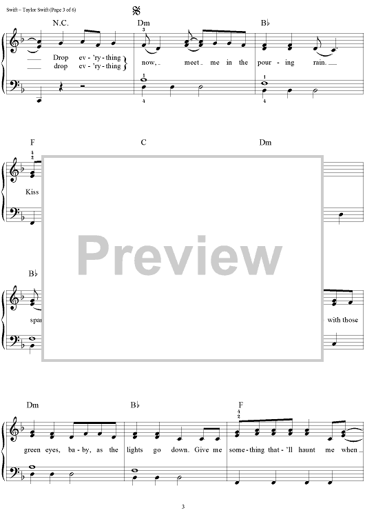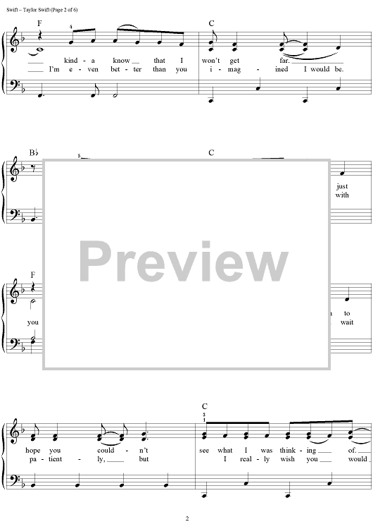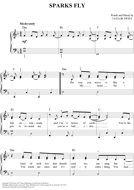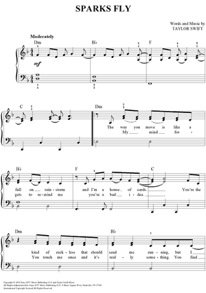 Digital Sheet Music for Sparks Fly by Taylor Swift scored for Easy Piano/Vocal/Chords; id:457632