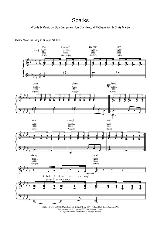 Digital Sheet Music for Sparks by Coldplay scored for Piano/Vocal/Chords; id:377205