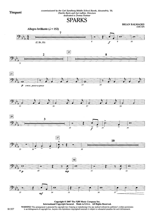 "Sparks - Timpani" Sheet Music by Brian Balmages