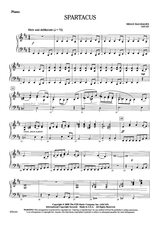 "Spartacus - Piano" Sheet Music by Brian Balmages
