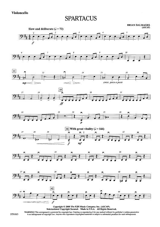 Digital Sheet Music for Spartacus - Violoncello by Brian Balmages scored for String Orchestra; id:441094