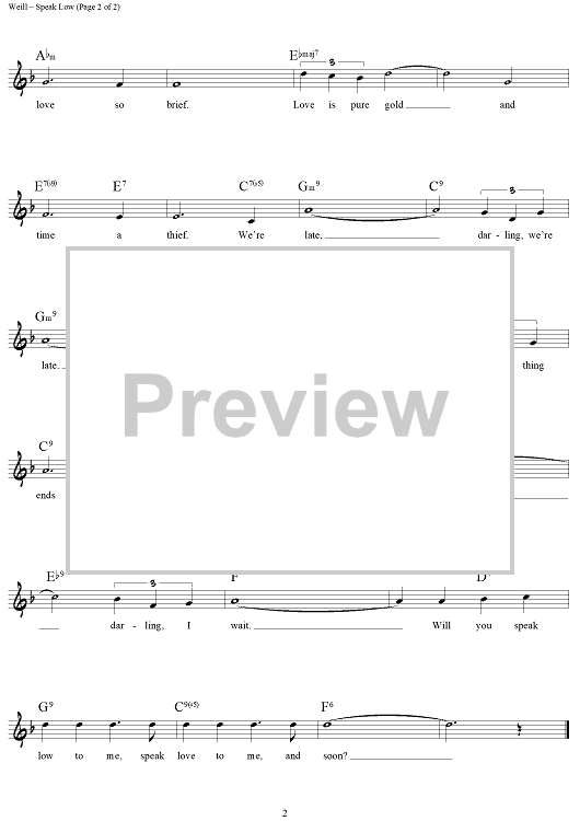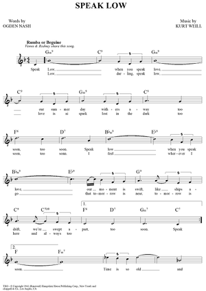 Digital Sheet Music for Speak Low by Ogden Nash, Kurt Weill scored for Lead Sheet; id:456964