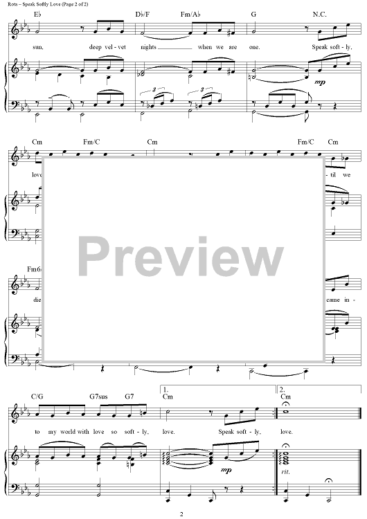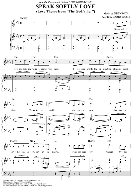 Digital Sheet Music for Speak Softly Love (Love Theme from "The Godfather") by Nino Rota, Larry Kusik scored for Piano/Vocal/Chords; id:255946
