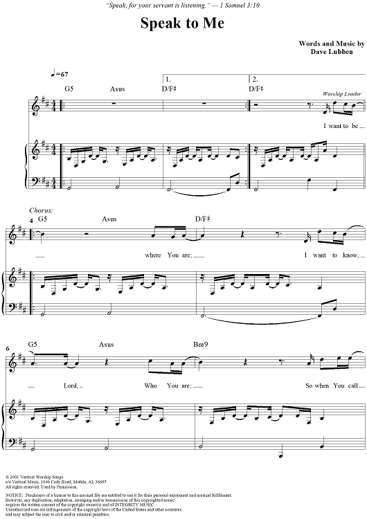 Digital Sheet Music for Speak To Me by Dave Lubben scored for Mixed Chorus/Piano; id:308872