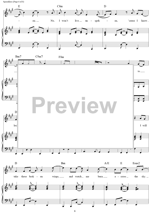 Digital Sheet Music for Speechless - from Disney's Aladdin by Alan Menken, Benj Pasek, Justin Paul scored for Solo Transposable; id:467593