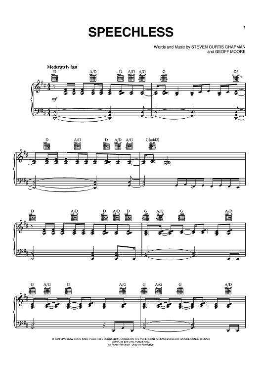 Digital Sheet Music for Speechless by Geoff Moore, Steven Curtis Chapman scored for Piano/Vocal/Chords; id:386648