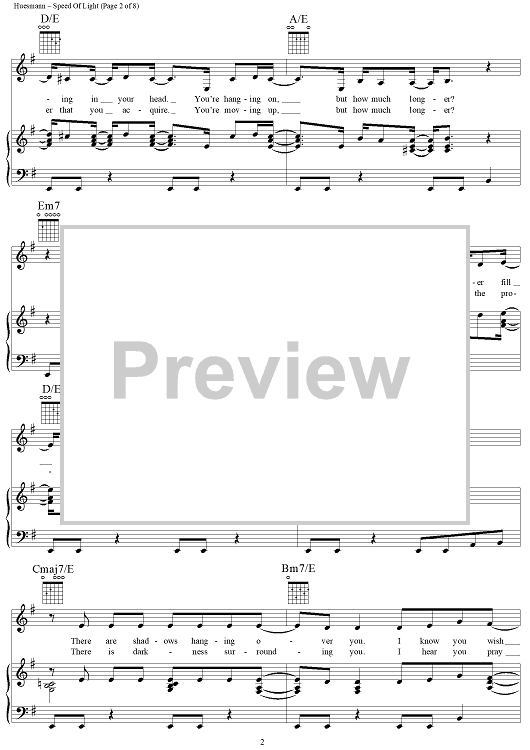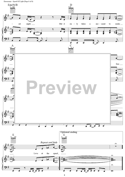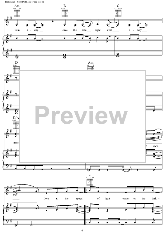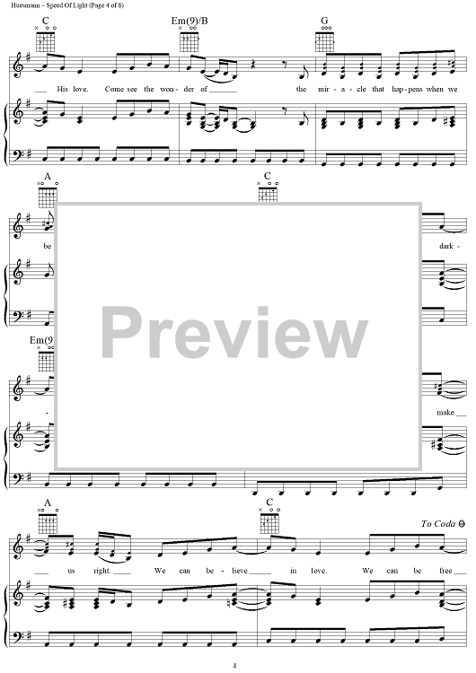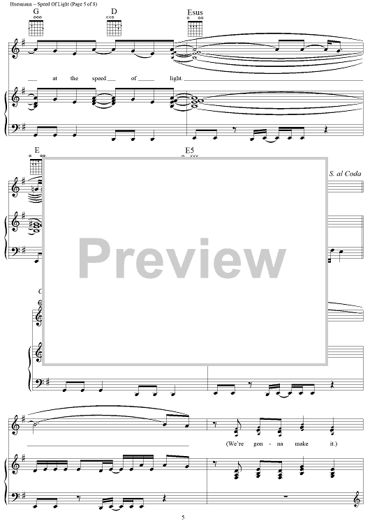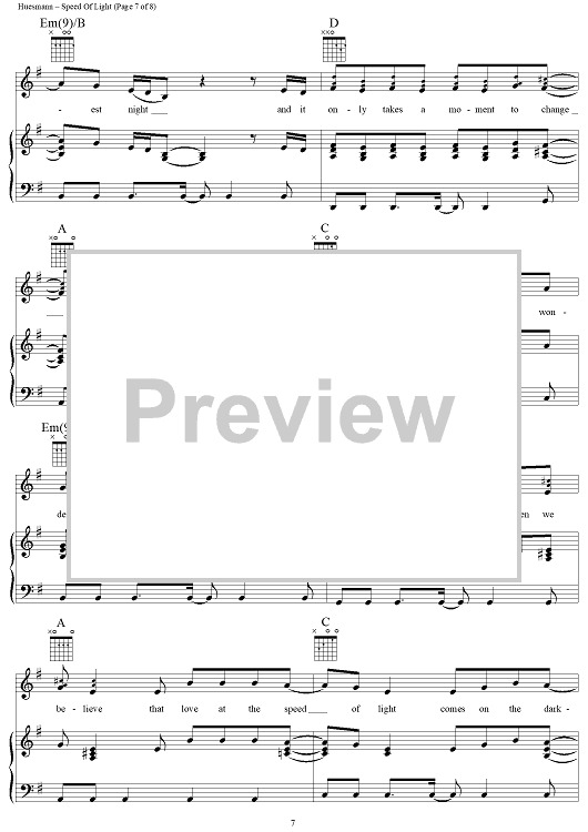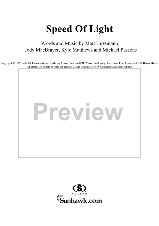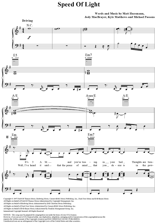 Digital Sheet Music for Speed Of Light by Matt Huesmann, Kyle Matthews, Jody McBrayer, Michael Passons, Avalon scored for Piano/Vocal/Chords; id:266165