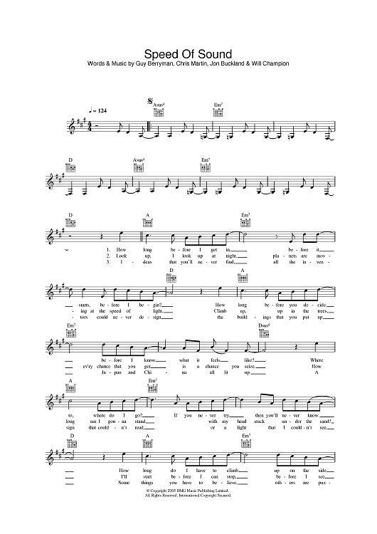 Digital Sheet Music for Speed Of Sound by Chris Martin, Coldplay, Jonny Buckland, Guy Berryman scored for Lead Sheet; id:389254