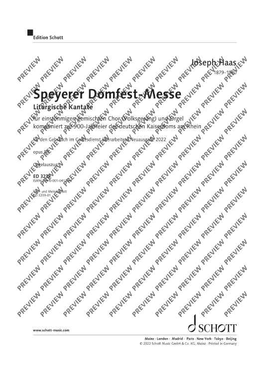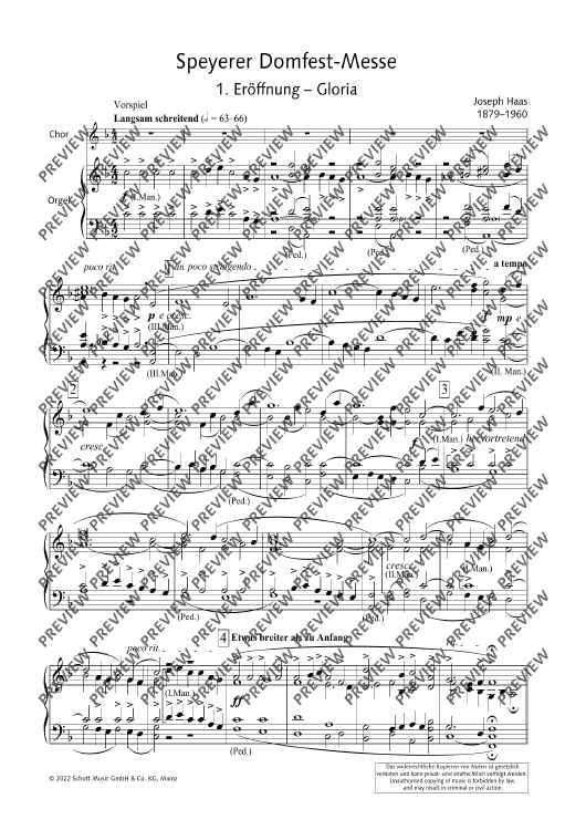 Digital Sheet Music for Speyerer Domfestmesse - Organ Reduction by Joseph Haas scored for Choir Unisono With Organ Or Orchestra Or Wind Band; id:472811