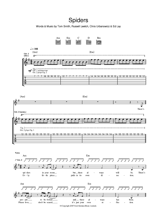 Digital Sheet Music for Spiders by Editors, Ed Lay, Russell Leetch, Tom Smith, Chris Urbanowicz scored for Guitar Tab; id:398060