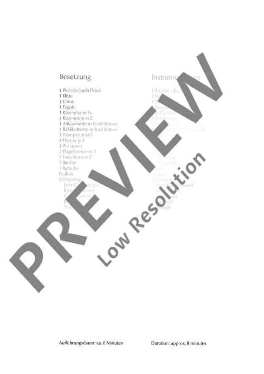Ernst Toch was one of the most important contemporary composers of the late Twenties and Thirties. He was active in Berlin and after 1933, in Los Angeles. As well as being a composer he was mainly a teacher. Spiel Op. 39 for Symphonie wind ensemble was composed at the instigation of Paul Hindemith and received its first performance in 1926 directed by Hermann Scherchen at the Donaueschingen Chamber Music Festival. Toch himself wrote an alternative arrangement of the work for the wind section of a symphony orchestra.This edition has been adapted for the instruments usually found in a wind band today, with regard to the clari-nets and trumpets, without altering the musical substance of the work. There is no pari for Saxophone äs in the original. Today Spiel is still considered to be one of the best compositions of concert music.