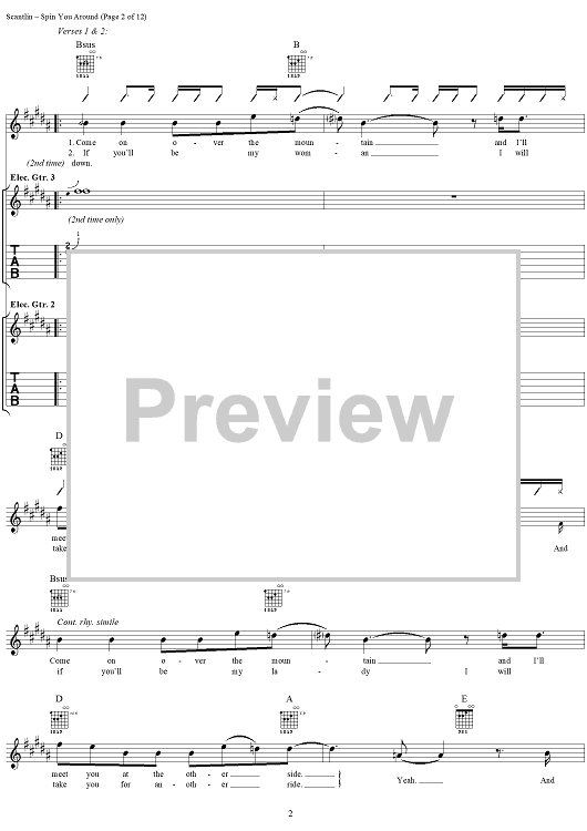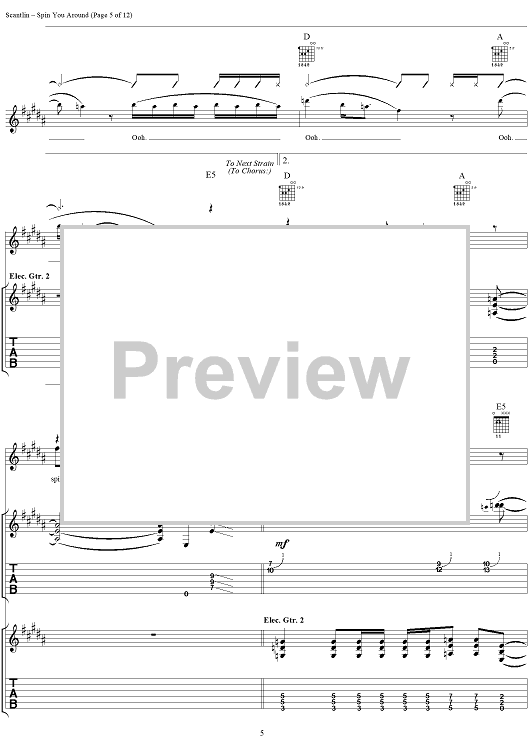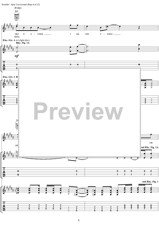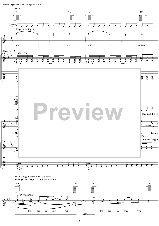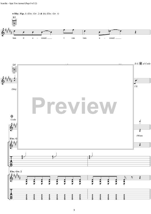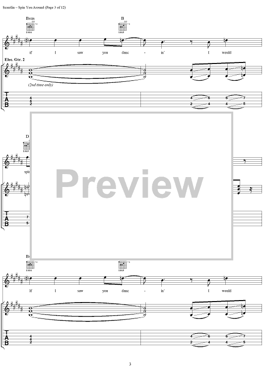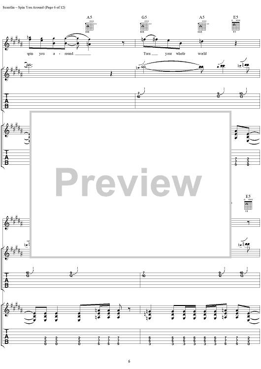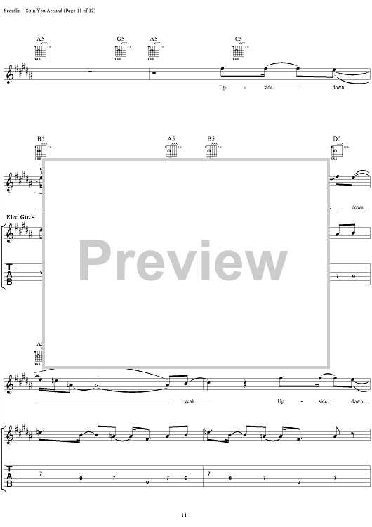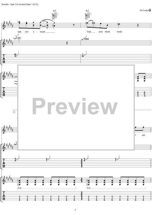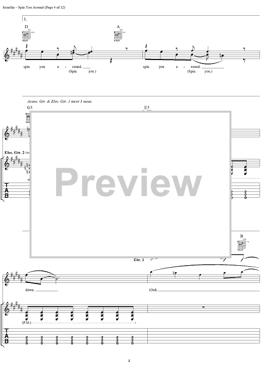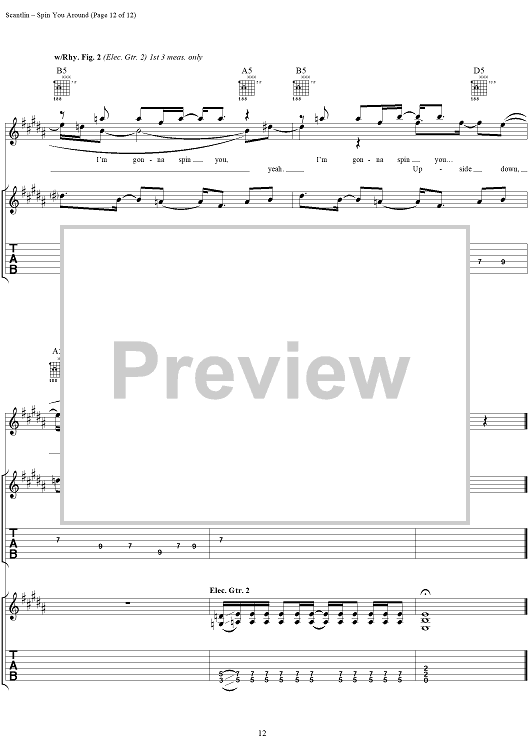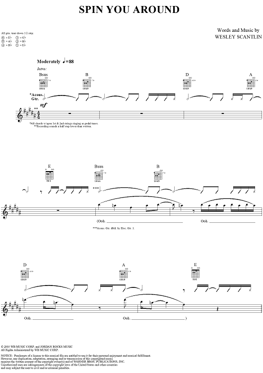 Digital Sheet Music for Spin You Around by Puddle Of Mudd, Wesley Scantlin scored for Guitar Tab/Vocal; id:307446
