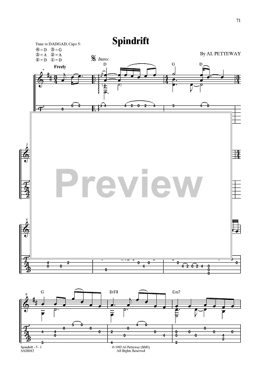 Digital Sheet Music for Spindrift (No MP3) by , Al Petteway scored for Guitar Tab; id:451784