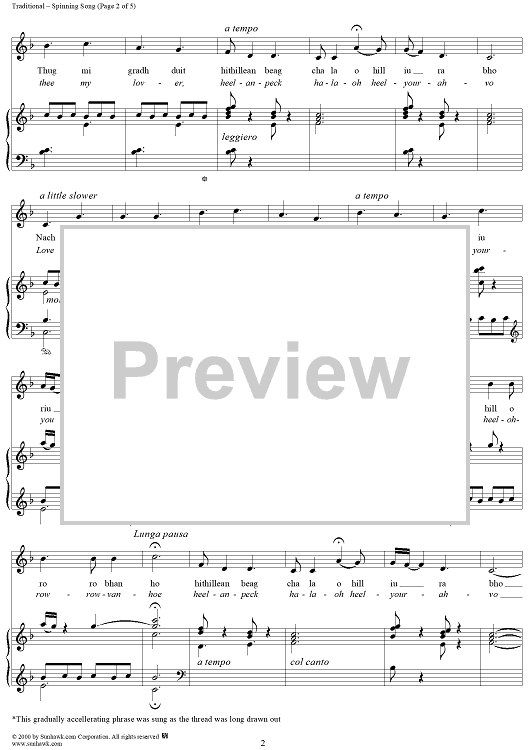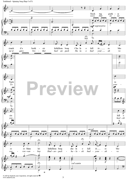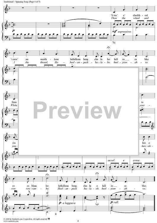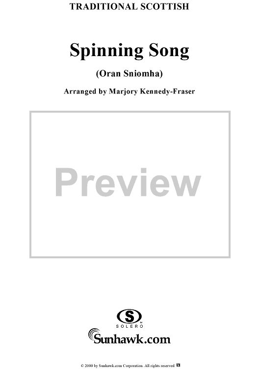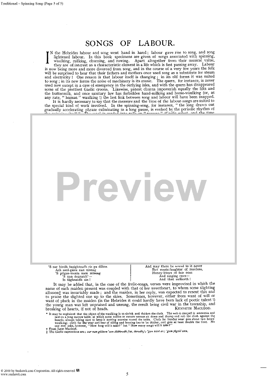 Digital Sheet Music for Spinning Song by Marjory Kennedy-Fraser, Traditional scored for Piano/Vocal; id:235395