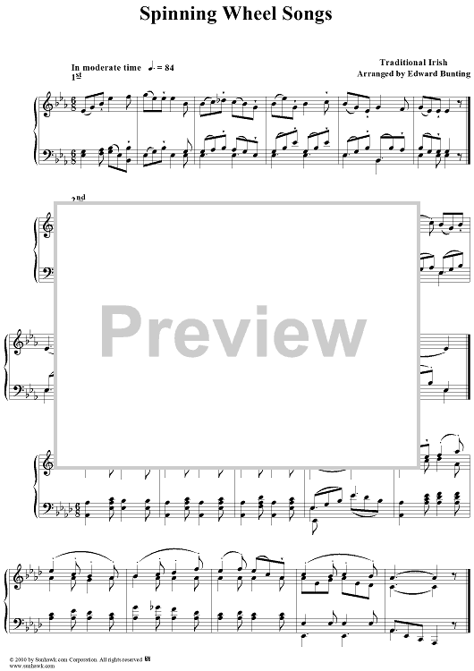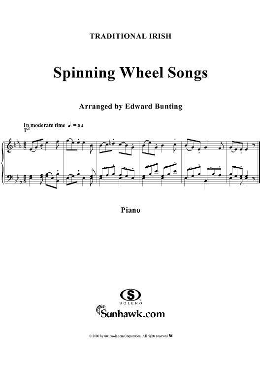 Digital Sheet Music for Spinning Wheel Songs by , Edward Bunting, Traditional scored for Piano Solo; id:234637
