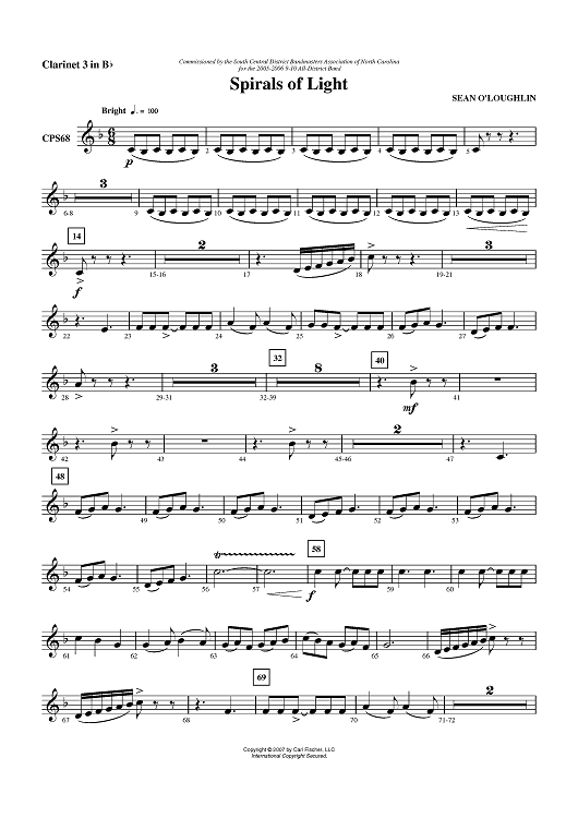 Digital Sheet Music for Spirals Of Light - Clarinet 3 in B-flat by Sean O'Loughlin scored for Concert Band; id:407298