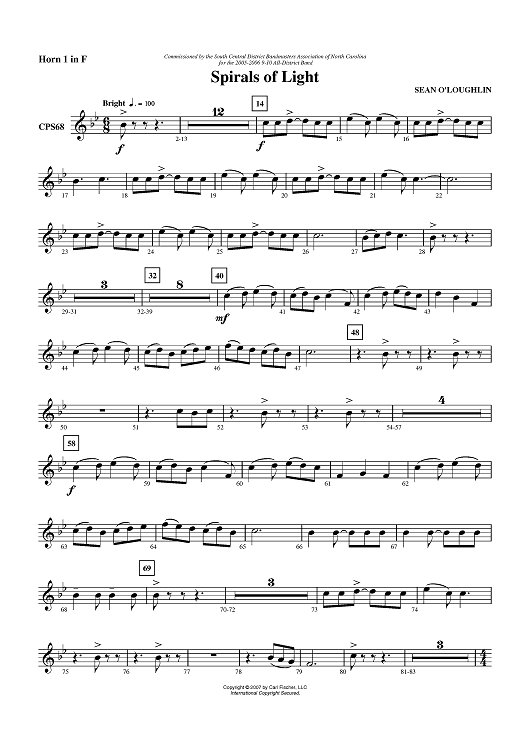 Digital Sheet Music for Spirals Of Light - Horn in F 1 by Sean O'Loughlin scored for Concert Band; id:407308
