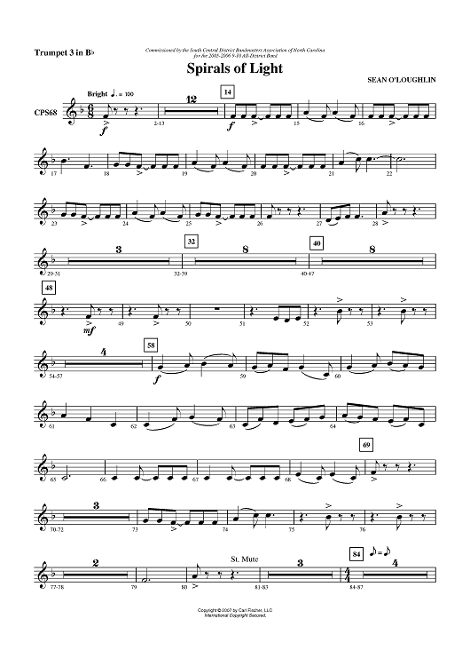 Digital Sheet Music for Spirals Of Light - Trumpet 3 in B-flat by Sean O'Loughlin scored for Concert Band; id:407307