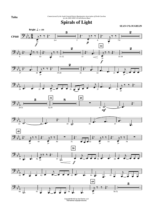 Digital Sheet Music for Spirals Of Light - Tuba by Sean O'Loughlin scored for Concert Band; id:407314