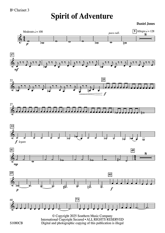 Digital Sheet Music for Spirit of Adventure - Bb Clarinet 3 by Dr. Daniel Jones scored for Concert Band; id:507758