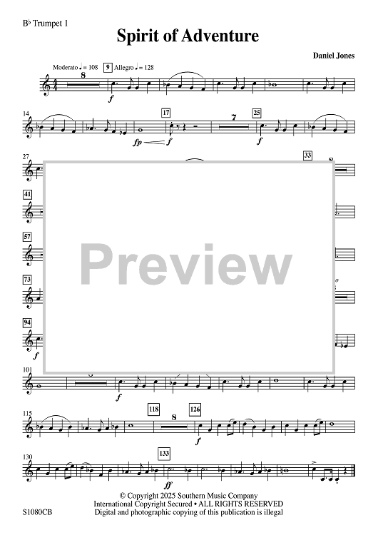 Digital Sheet Music for Spirit of Adventure - Bb Trumpet 1 by Dr. Daniel Jones scored for Concert Band; id:507764
