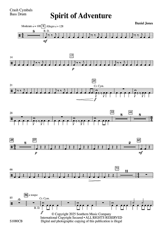 Digital Sheet Music for Spirit of Adventure - Crash Cymbals / Bass Drum by Dr. Daniel Jones scored for Concert Band; id:507778