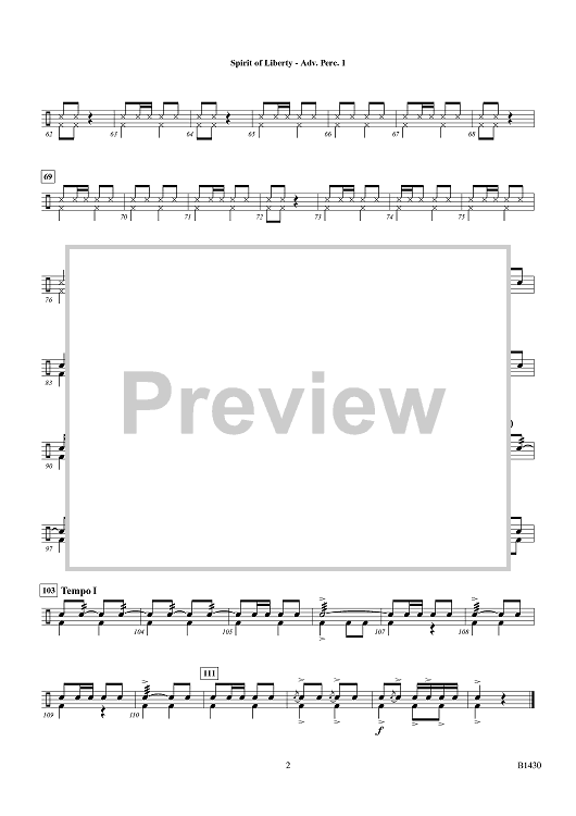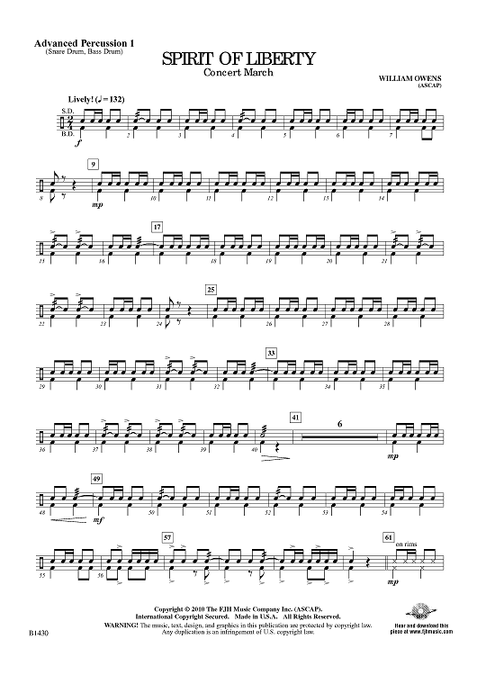 "Spirit of Liberty - Concert March - Advanced Percussion 1" Sheet Music by William Owens