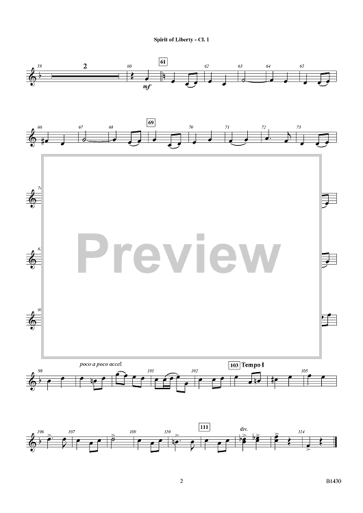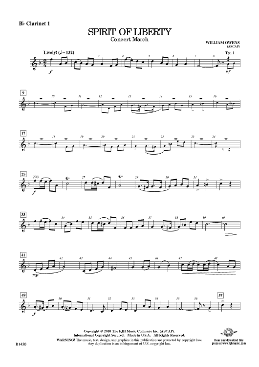 "Spirit of Liberty - Concert March - Bb Clarinet 1" Sheet Music by William Owens