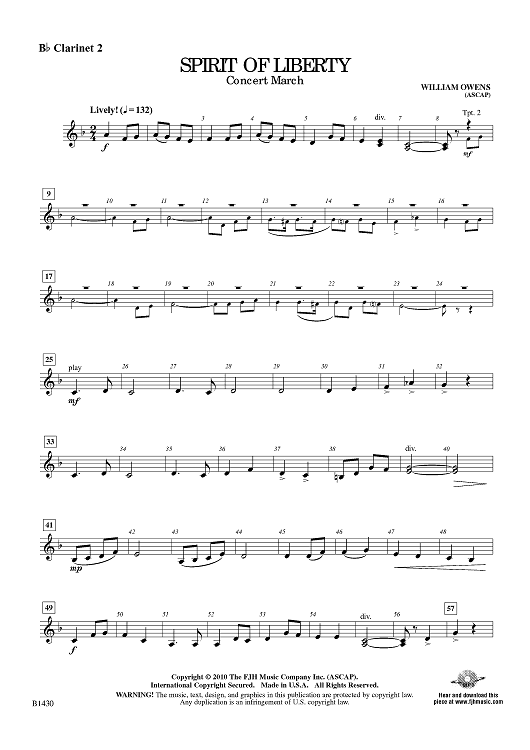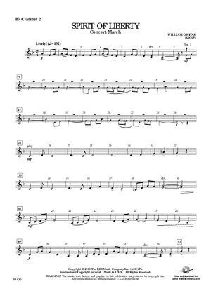 "Spirit of Liberty - Concert March - Bb Clarinet 2" Sheet Music by William Owens
