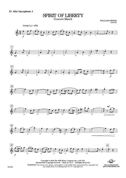 "Spirit of Liberty - Concert March - Eb Alto Sax 1" Sheet Music by William Owens